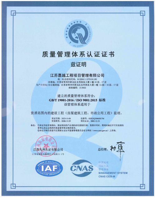 2.通过体系的建立使 ISO 9001:2015标准转化为指导公司监理服务提供各过程的可操作管理文件,通过文件的实施,规范公司的各项管理与服务工作,提高公司整体质量管理水平;