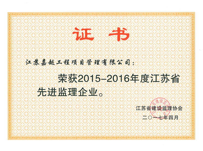 2015-2016江苏省先进监理企业